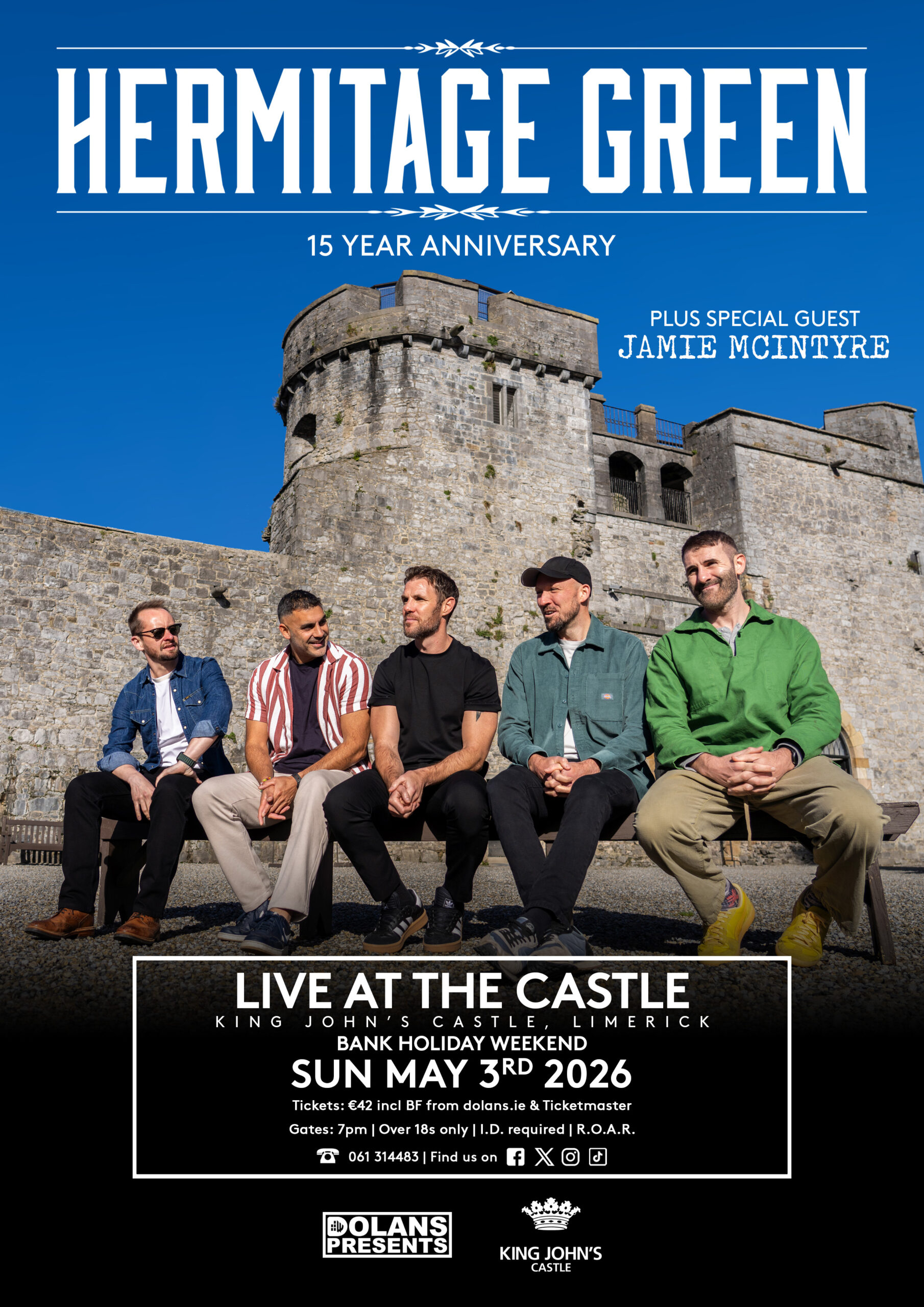 Limerick favourites Hermitage Green will celebrate their 15-year anniversary with a special hometown concert at King John’s Castle on Sunday, May 3rd, 2026, as part of the May Bank Holiday weekend.