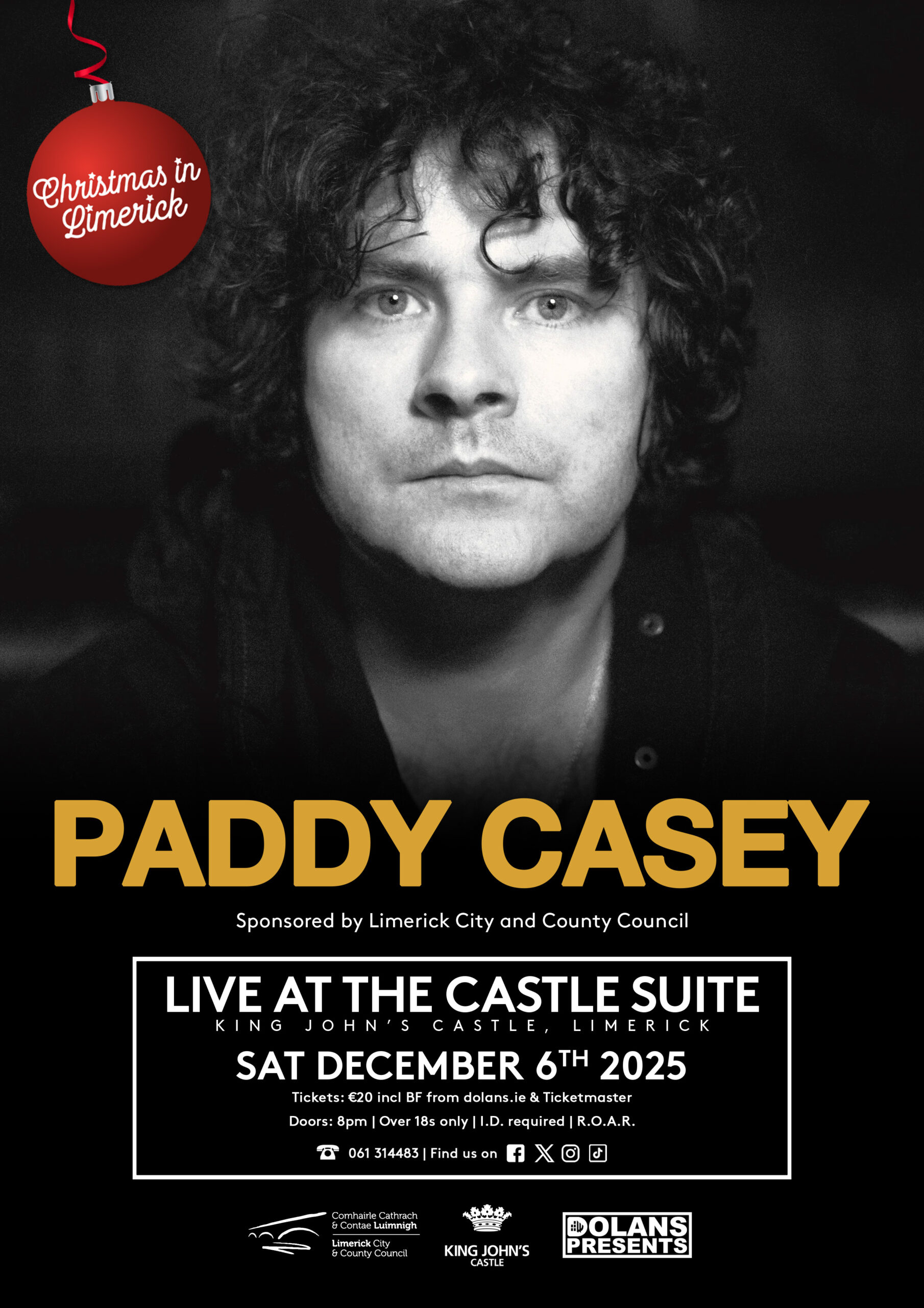 King John’s Castle is thrilled to welcome one of Ireland’s most celebrated singer-songwriters, Paddy Casey, to open the brand-new Castle Suite Sessions this December.
